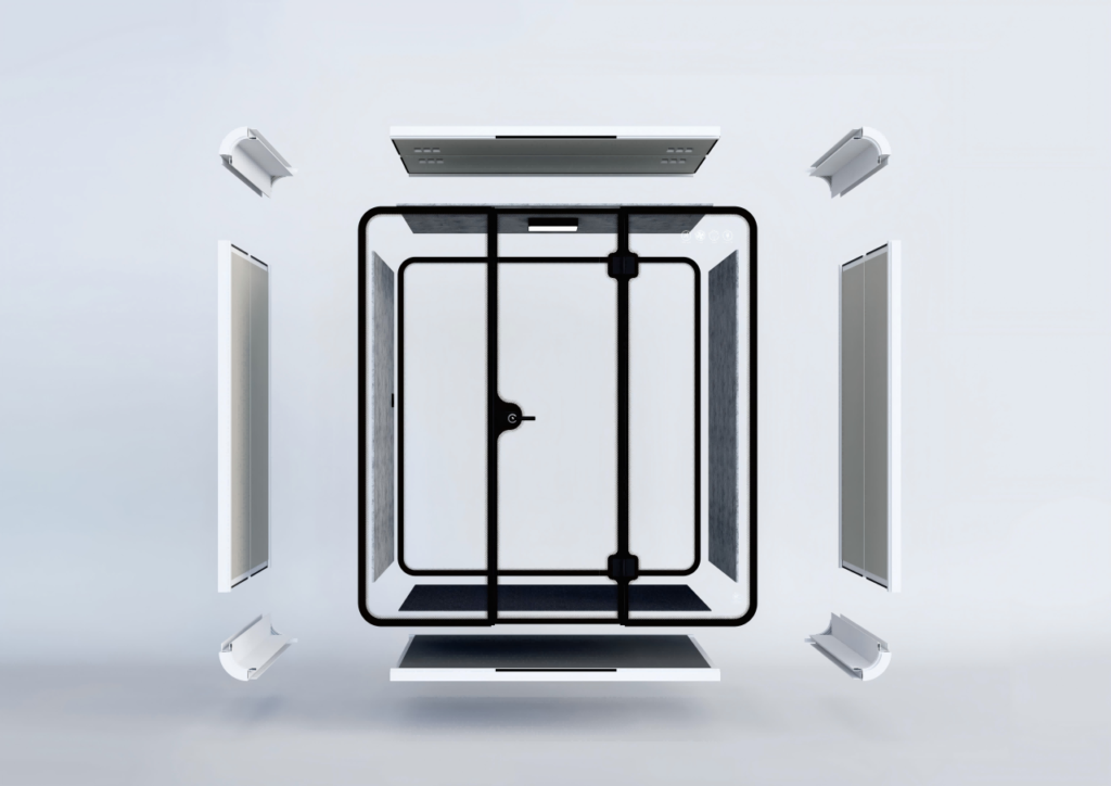 The QBOX soundproof pod features a modern, stylish design that fits perfectly into any office space. With its modular design, installation is simple and quick, saving you both time and costs.